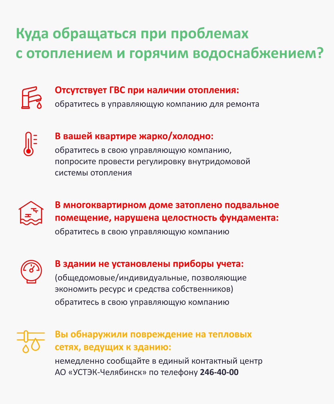 Телефон единого контактного центра АО «УСТЭК-Челябинск» - 246 40 00.
